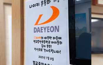 ㈜대연벌교중앙초등학교에 "1,300만원 상당의 나이키 신발 후원"어린이들에게 꿈과 나눔 실천 ㈜대연은 7월 8일, 전남 보성군 벌교 중앙초등학교 전교생을 대상으로 특별한 나눔 활동을 진행했습니다.'전교생 모두에게 나이키 신발과 스포츠 용품을 선물'하며,아이들의 개개인 발 사이즈에 꼭 맞춘 맞춤형 기부를 실천했습니다.이번 나눔은 총..